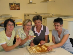 Tschun bibliotecaras vid las preparaziuns digl apéro.